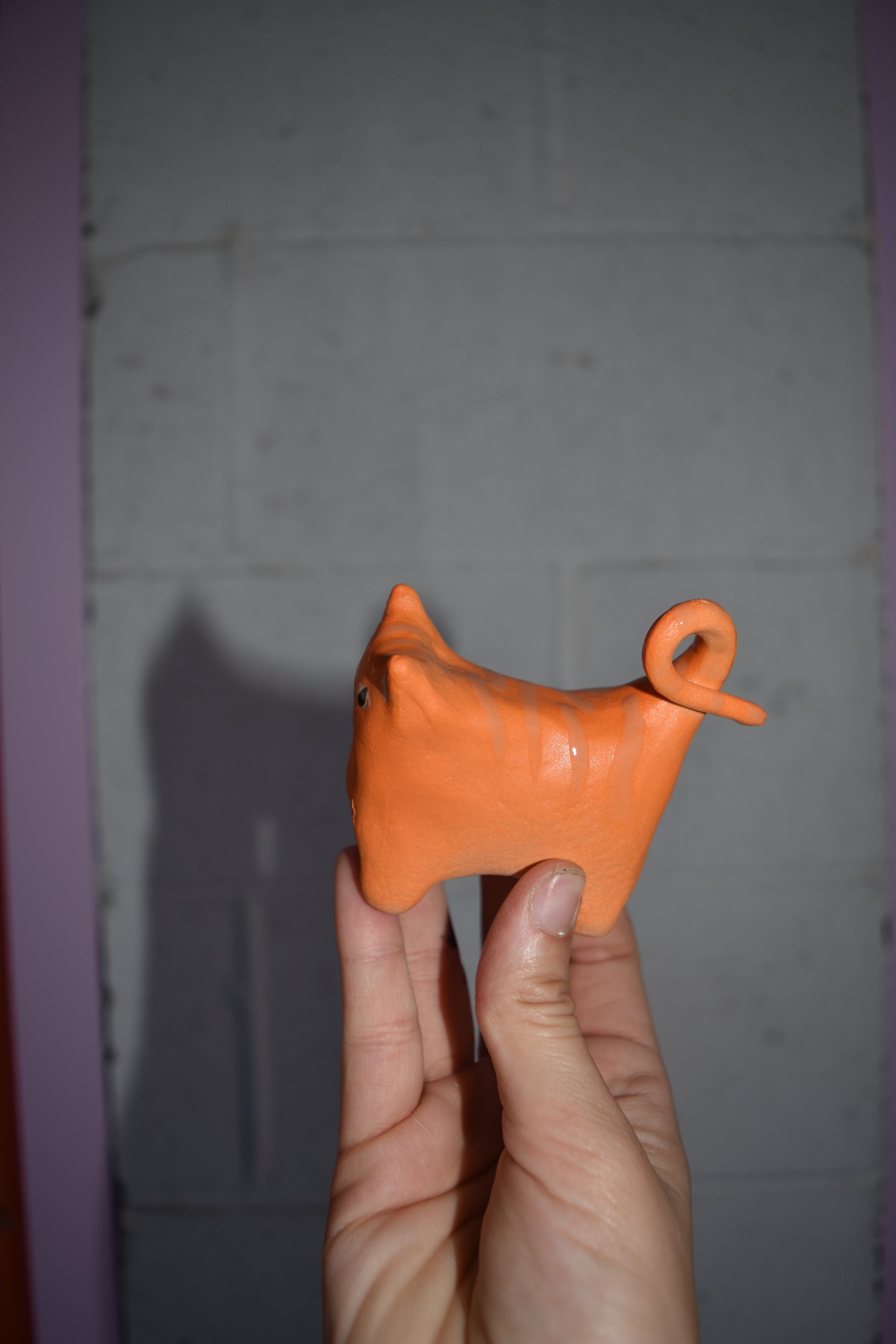 This adorable hand-sculpted and hand-painted kitty cat figurine is full of charm! Featuring a playful orange tabby design with sweet details, each figurine is lovingly crafted to be one-of-a-kind. Perfect for cat lovers, collectors, or anyone who wants to add a touch of cuteness to their home décor. Whether displayed on a shelf, desk, or windowsill, Bowser the Orange Kitty is sure to bring a smile to your face.