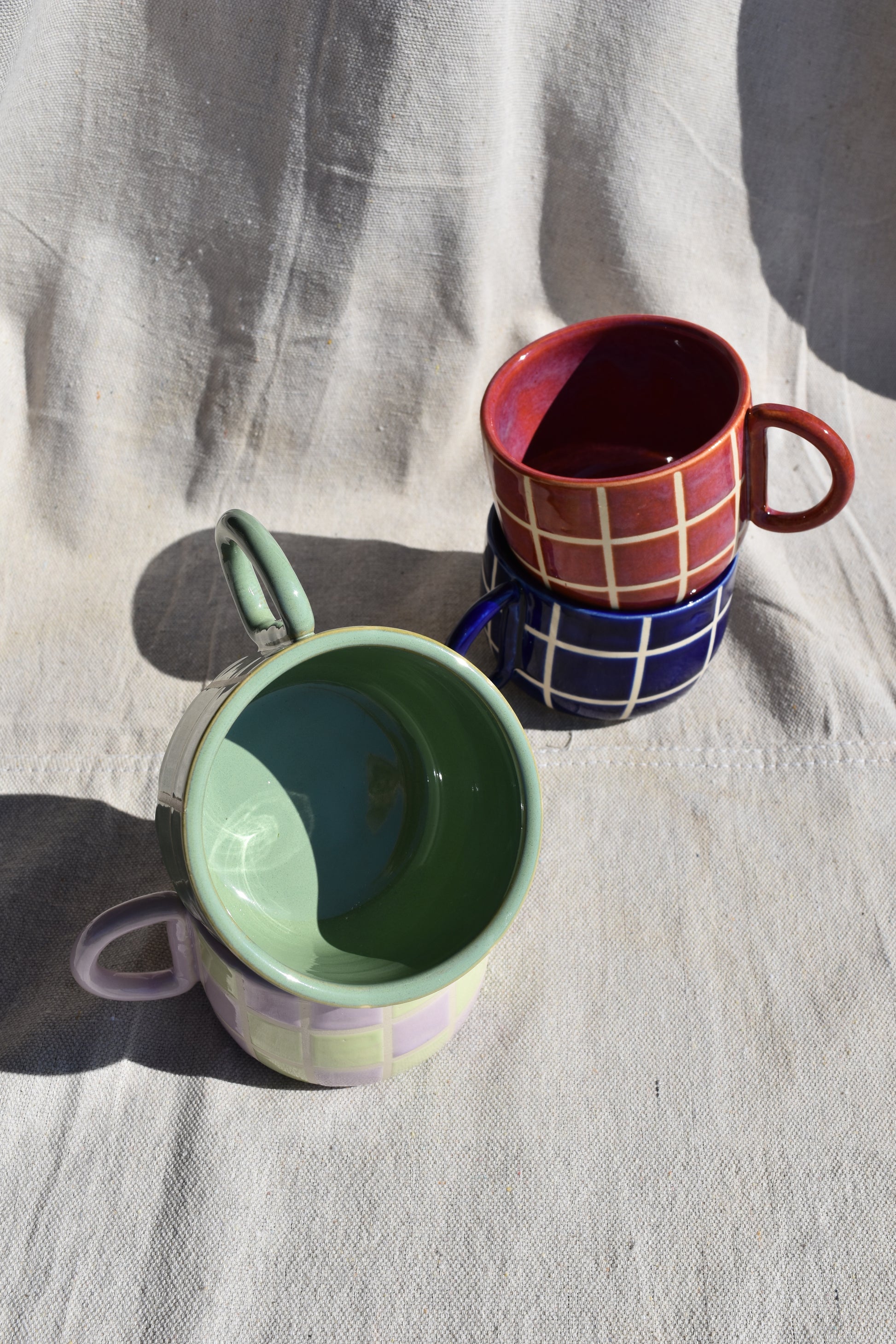 Bring a little pattern to your daily sip. Each tiled mug is hand-thrown, glazed, and decorated with a playful grid-inspired design that feels both modern and timeless. Perfectly sized for your morning coffee or evening tea, these mugs are as sturdy as they are stylish. The bold tile pattern adds a pop of character to your cupboard while still keeping that cozy, handmade touch. No two are exactly alike—each one is its own little mosaic.